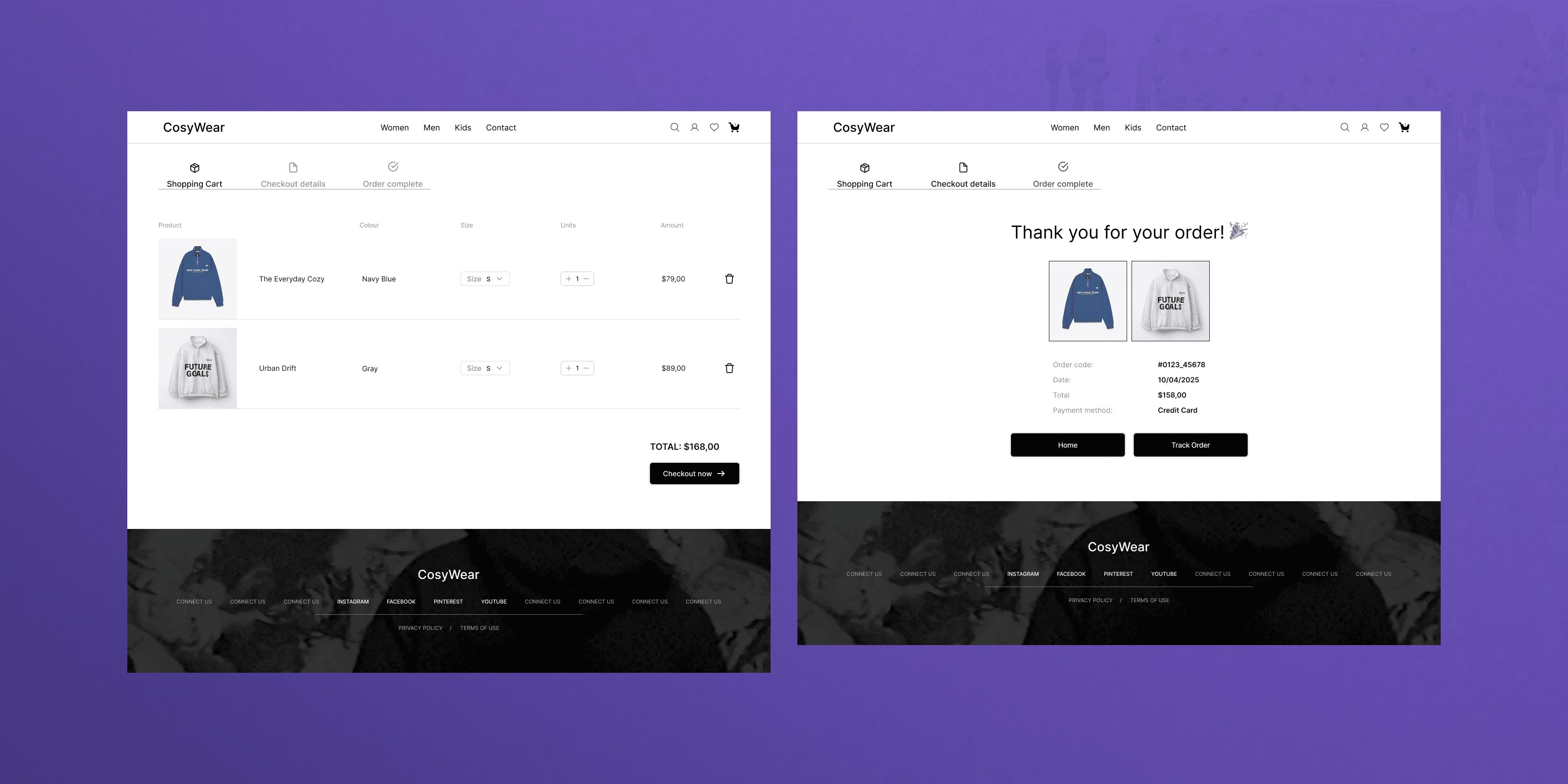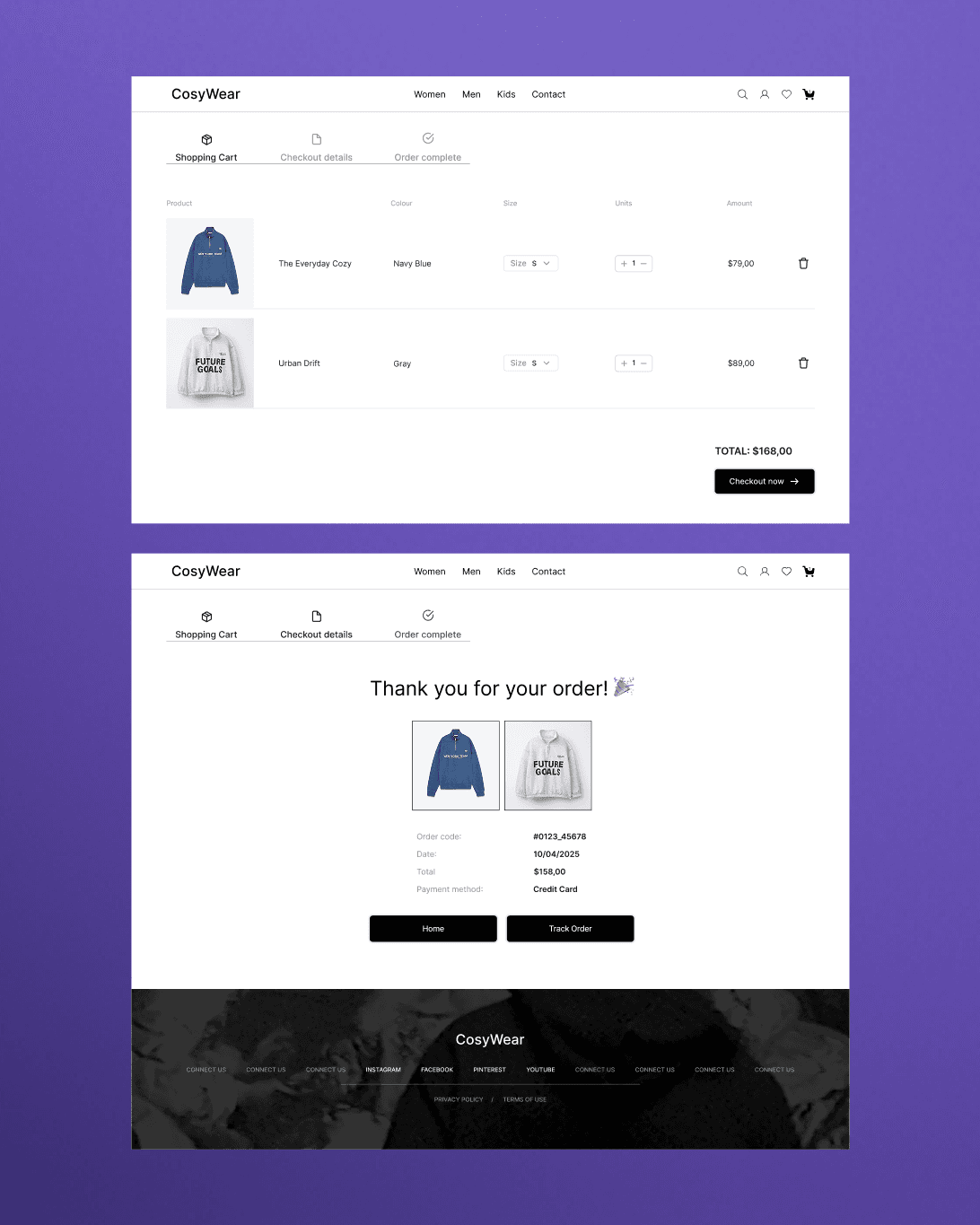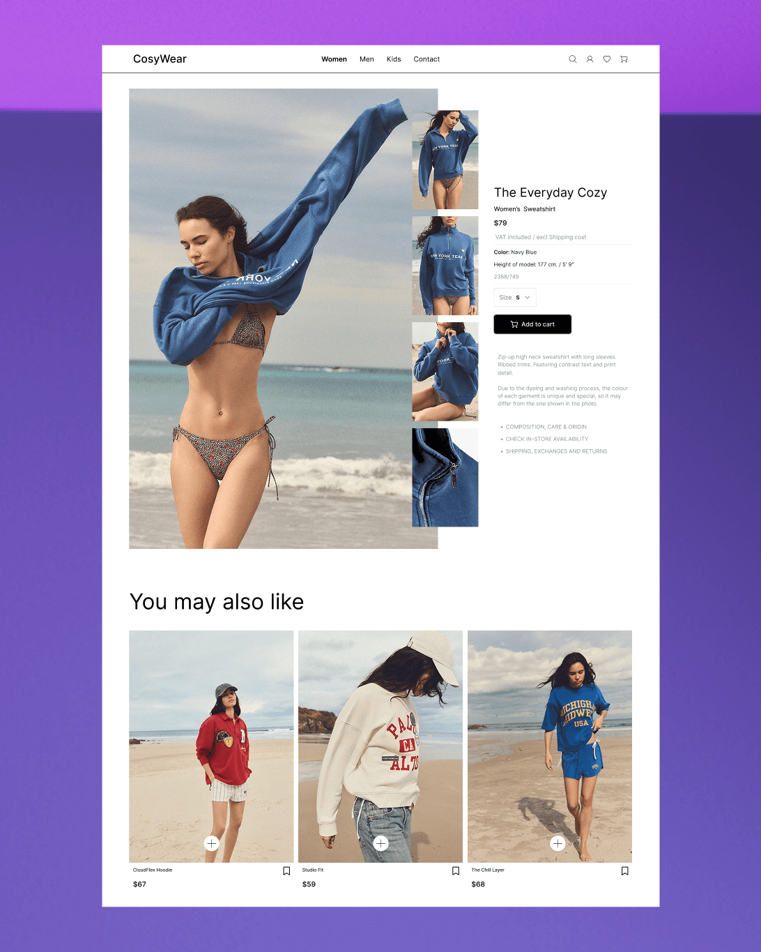 The result is a minimalist e-commerce concept that balances style and functionality in a calm, inviting digital space. CosyWear offers users an effortless path from discovery to purchase, creating a shopping experience that feels relaxed, trustworthy, and visually refined.