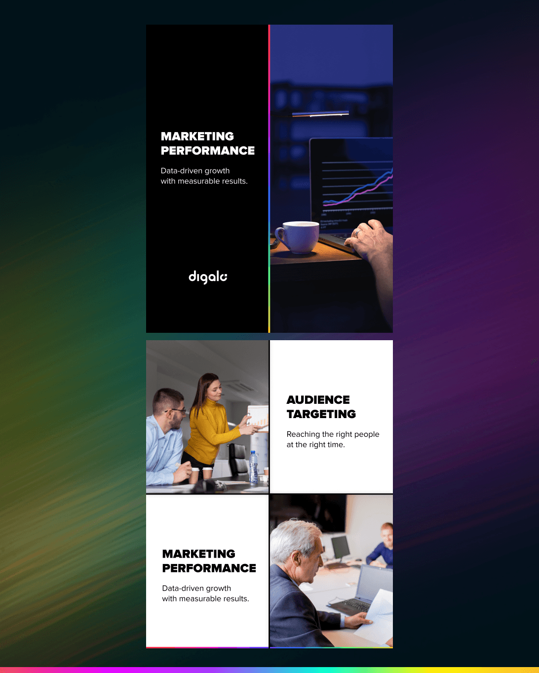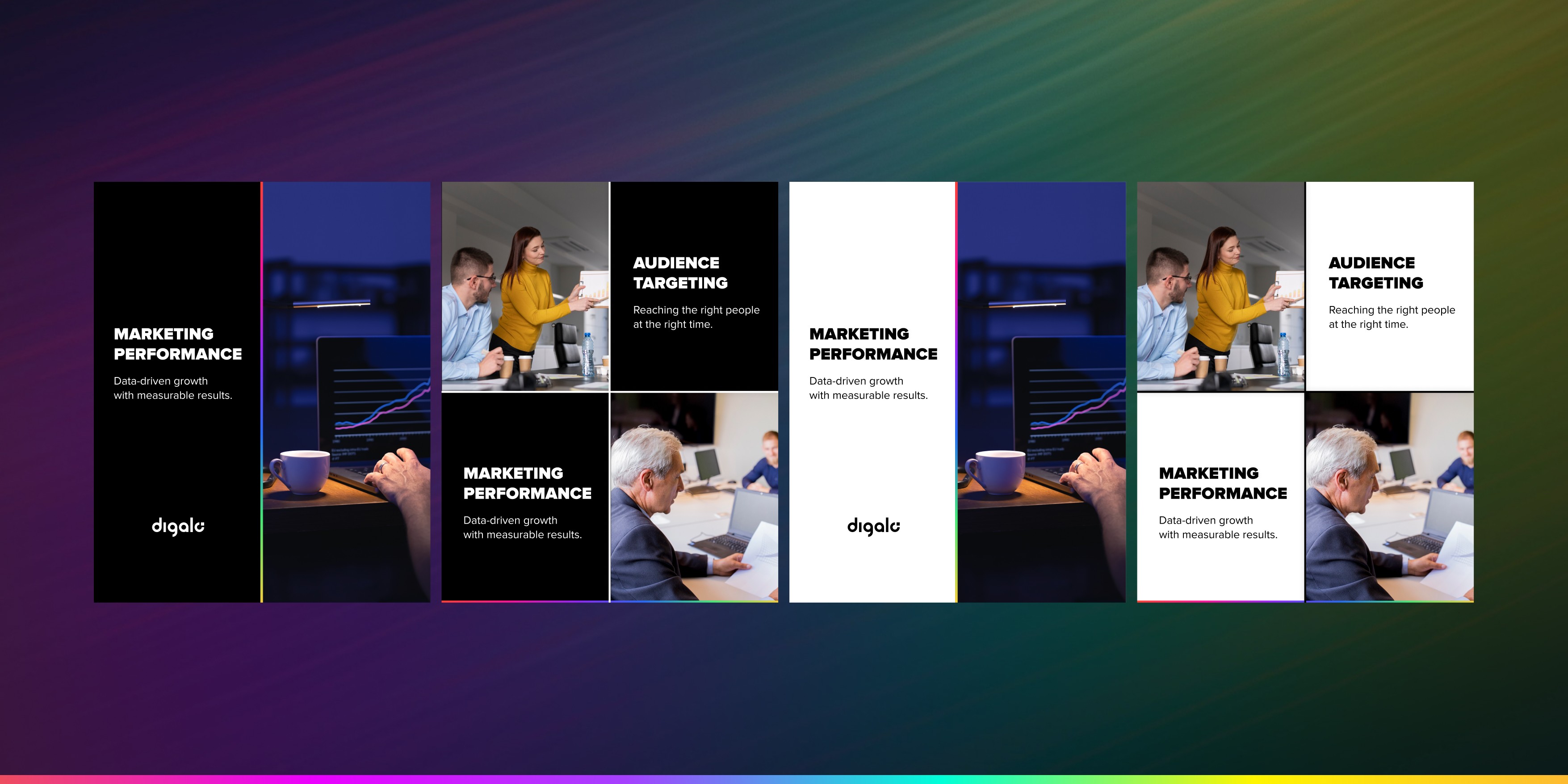 To strengthen Digalo's online presence, a complete ecosystem of social media templates was developed. The primary goal was to transform visual communication into a structured and professional brand identity, enabling rapid content production without compromising quality.