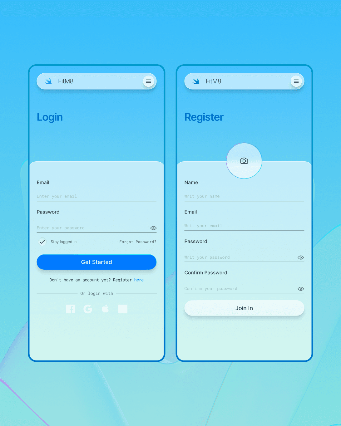 FitM8 follows a minimalist and user-first design approach. Bright layouts, generous spacing, and clear typography create a calm visual rhythm, while friendly UI components support easy navigation throughout the app.
