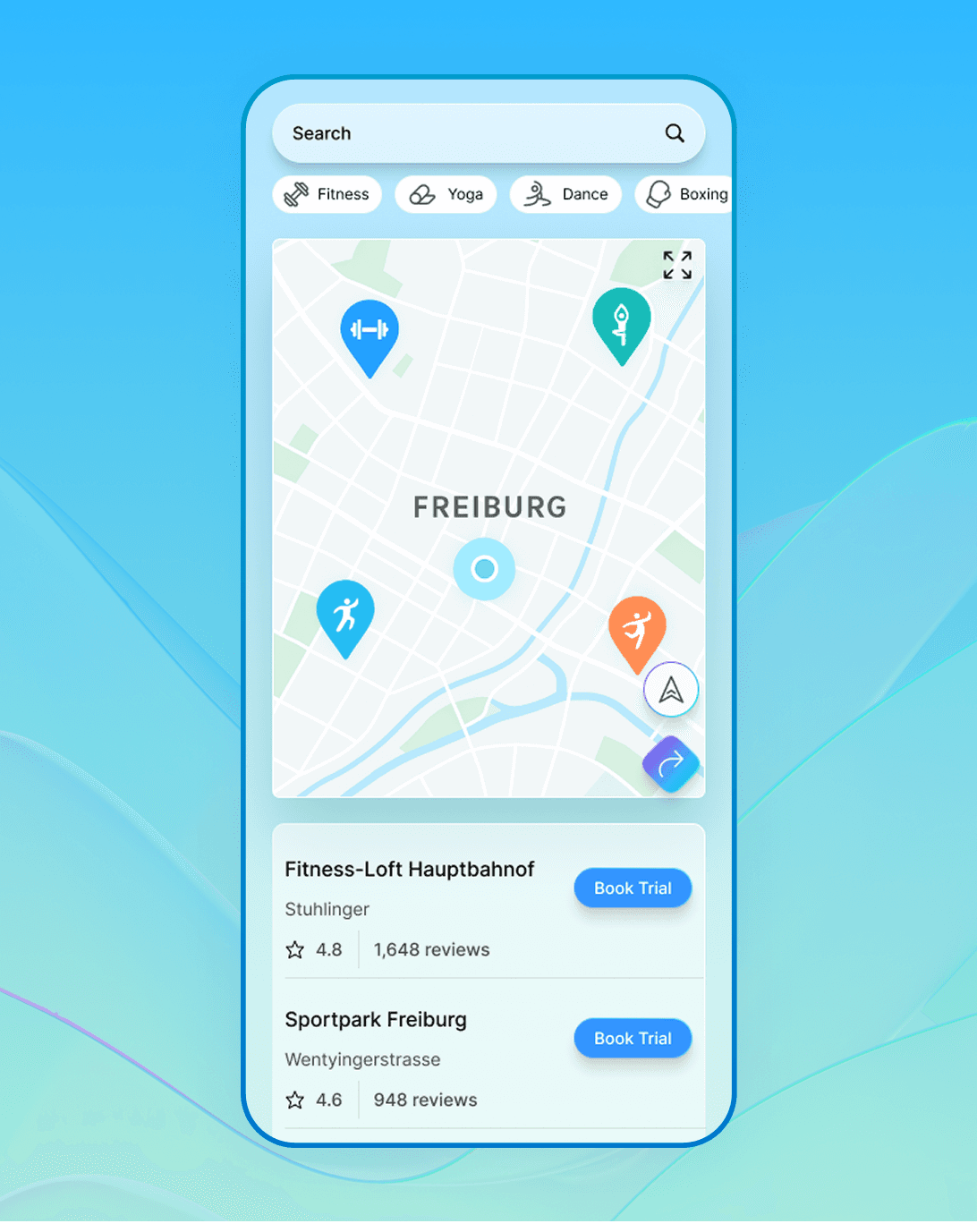 Map-based exploration for discovering fitness partners and locations